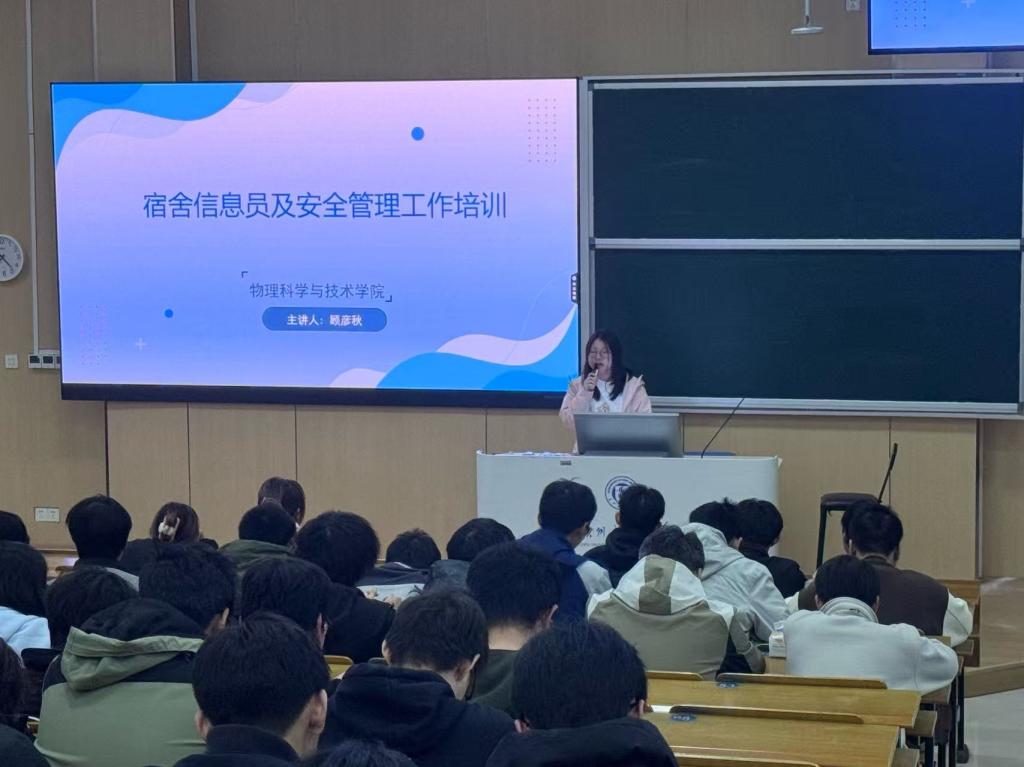 开展学生宿舍安全工作专题培训会。本次培训由辅导员顾彦秋主讲,2024级全体宿舍舍长及各班主要学生干部参加,共同学习安全规范,筑牢宿舍安全“防火墙”。